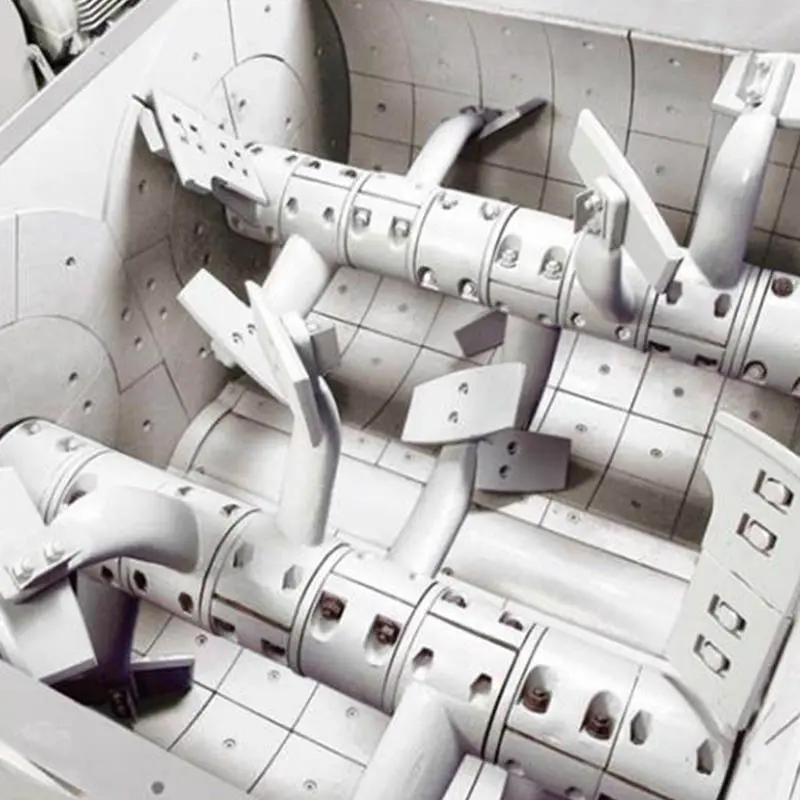 JS မသင်မနေရရောနှောထားသောရောနှောပေါင်းစပ်ထားသောအလျားလိုက်စီစဉ်ထားသောမြို့ပတ်ရထား groove ပုံသဏ္ဌာန်ရောနှောထားသောဗုံများနှင့်ဆန့်ကျင်ဘက်လမ်းကြောင်းများနှင့်လှည့်ထားသောအရောအနှောများနှင့်လှည့်ထားသောယန္တရားနှစ်ခုဖြင့်ဖွဲ့စည်းထားသည်။ ဓါးသွားနှစ်မျိုးဖြင့်ဓါးသွားများကိုရောနှောနေသည့်အုပ်စုများစွာကိုတပ်ဆင်ထားသည်။ တစ်ဖက်တွင်အောက်ခြေရှိရောနှောခြင်းနှင့်ရောစပ်သောစည်၏အလယ်သို့အရောအနှောသည်အထက်သို့လှည့်ထားသည်။